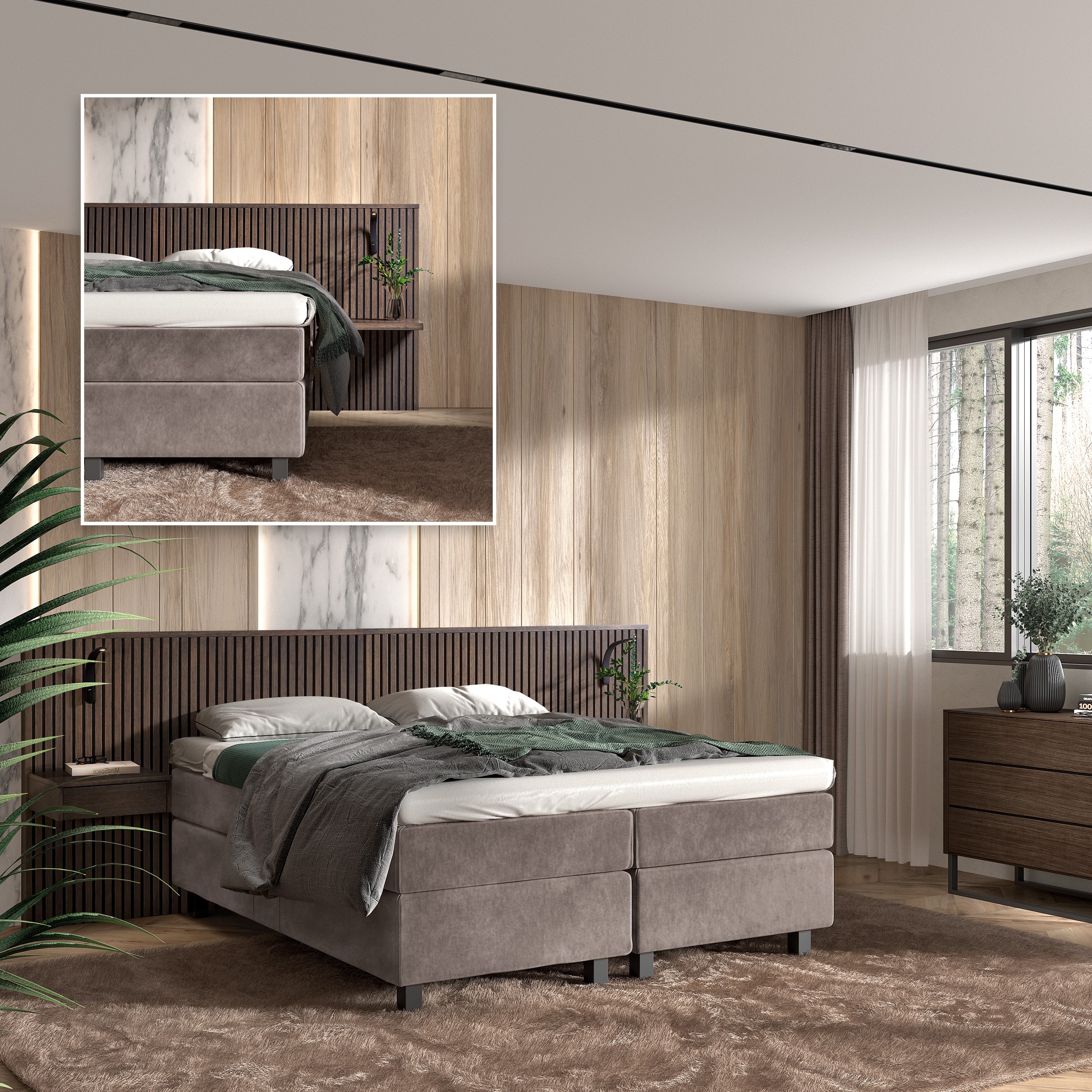 Het model is verkrijgbaar in diverse afmetingen en kan naar wens worden uitgebreid met andere nachtkastjes, LED-verlichting en een bijpassende commode.